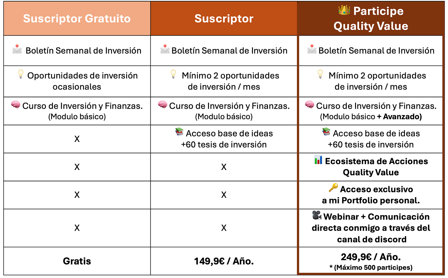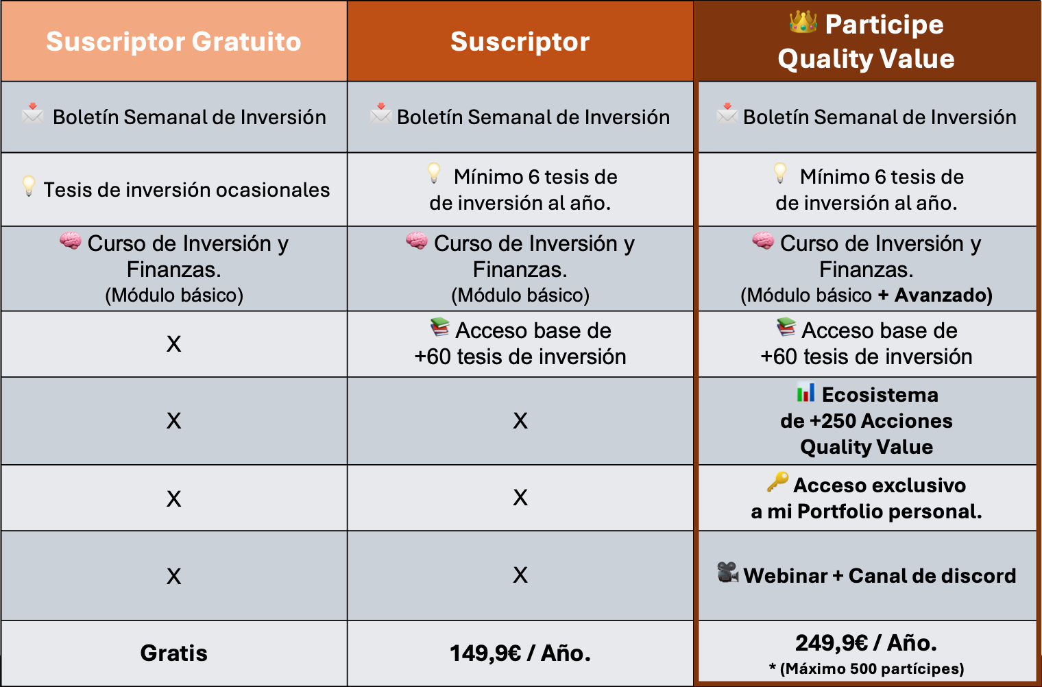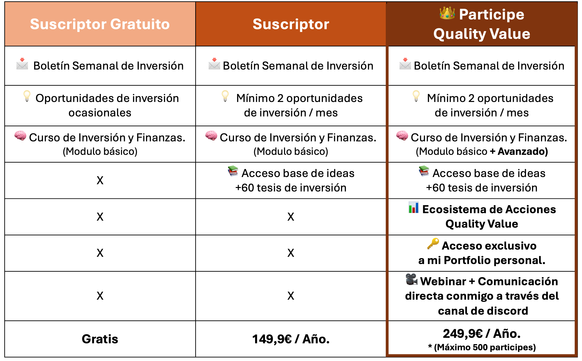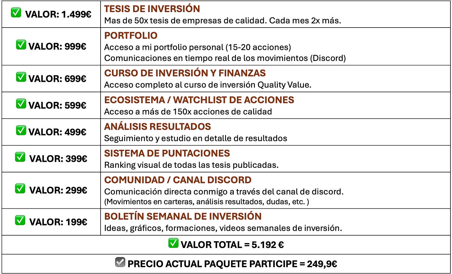 Conviértete en Partícipe de Quality Value (249,9 €/año) y tendrás: