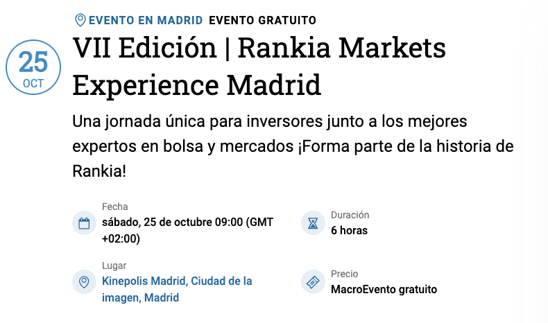 Como ya comenté en boletines pasados el evento gratuito Rankia Markets Experience se acerca: