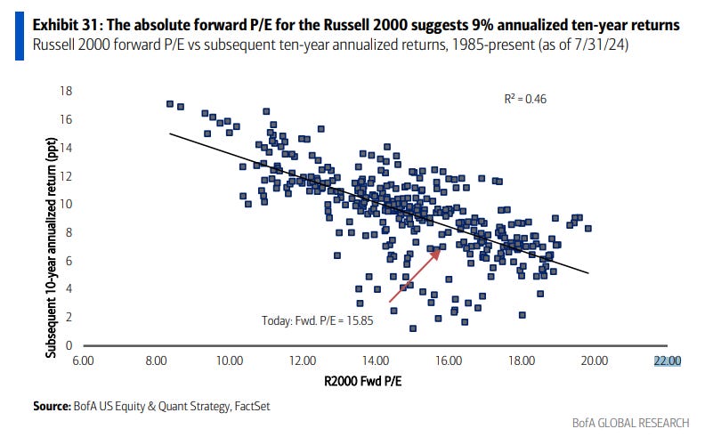 En base a la valoración actual del Russell 2000 se estima una rentabilidad del 9% anualizada para los próximos 10 años: