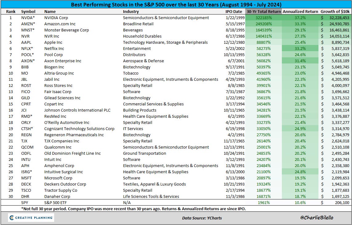 Acciones del SP500 que mejor se han comportado en los últimos 30 años:
