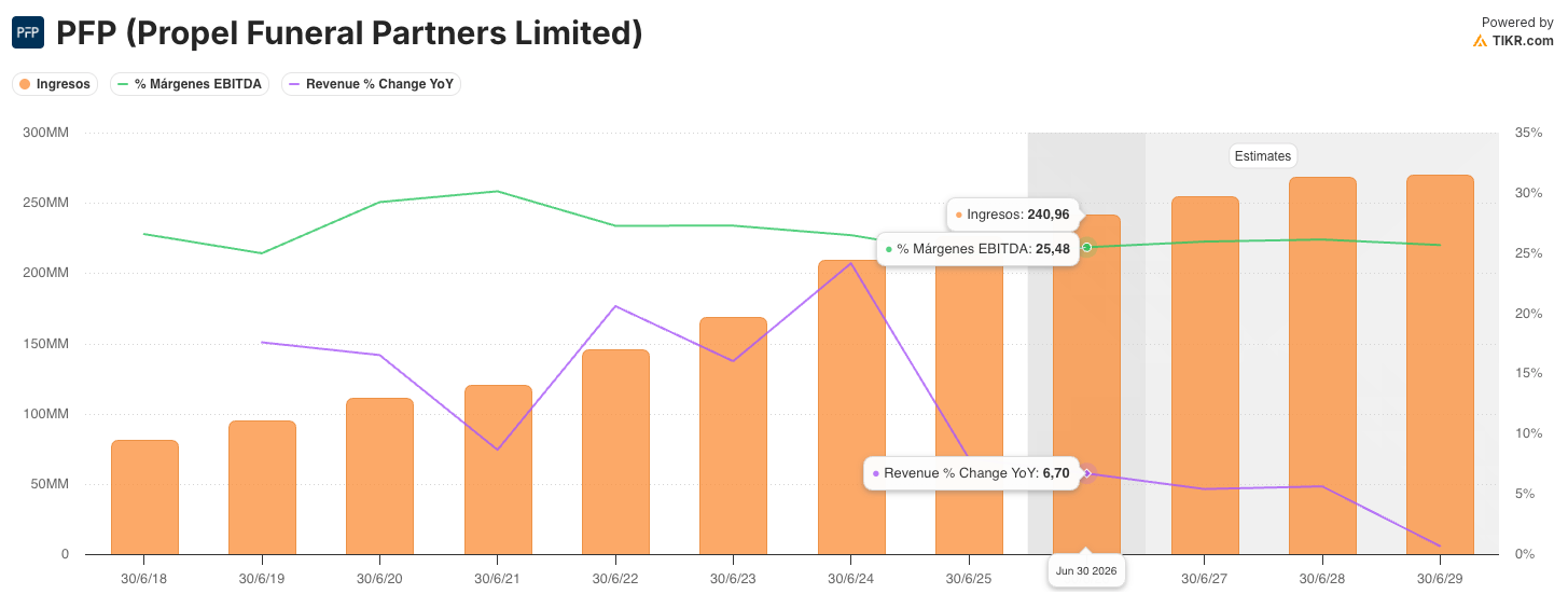 3) Propel Funeral Partners (PFP) — Small Cap (Australia/Nueva Zelanda)