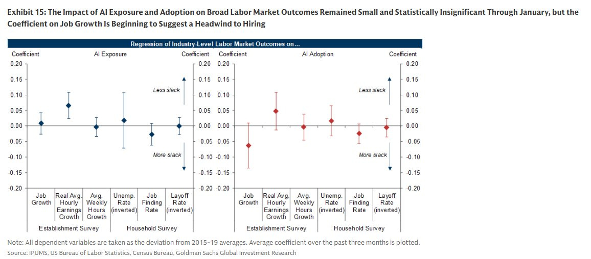 So what / implicación: El impacto macro de IA en empleo sigue siendo marginal por ahora, pero el dato de contratación es la primera grieta. Monitorear este coeficiente en próximos meses como indicador adelantado de desplazamiento laboral.