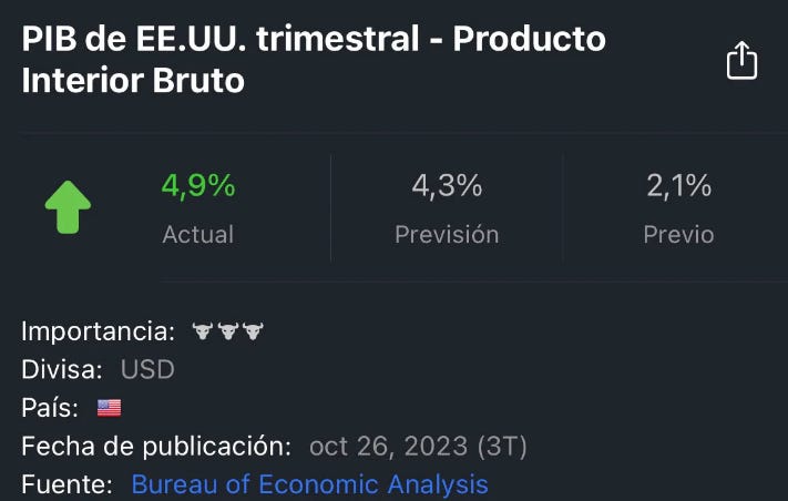 Estados Unidos se aleja de la recesión y crece 4,9% anual en tercer trimestre de 2023