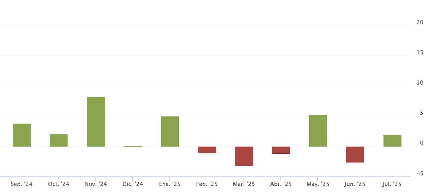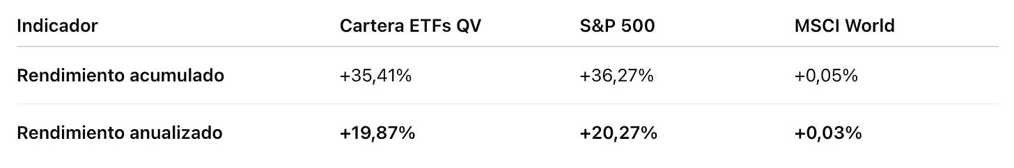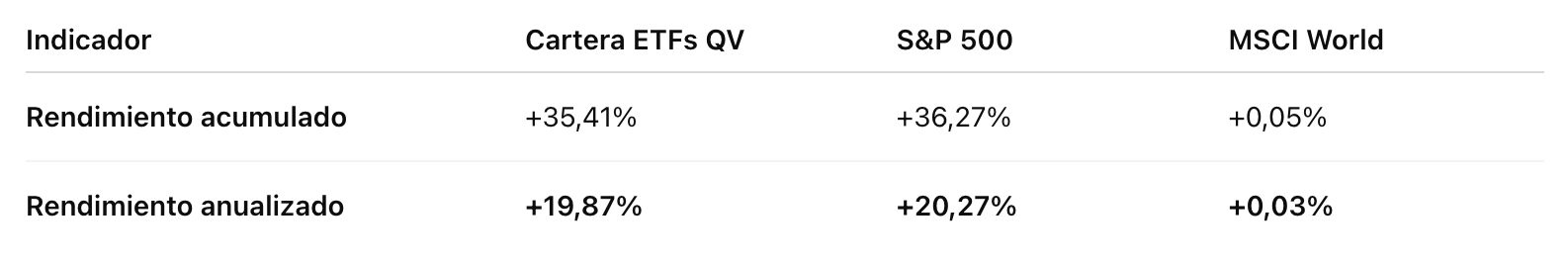 La cartera fue creada el 29 noviembre de 2023, y desde entonces el rendimiento acumulado es de +35.41% a 9 de julio de 2025.