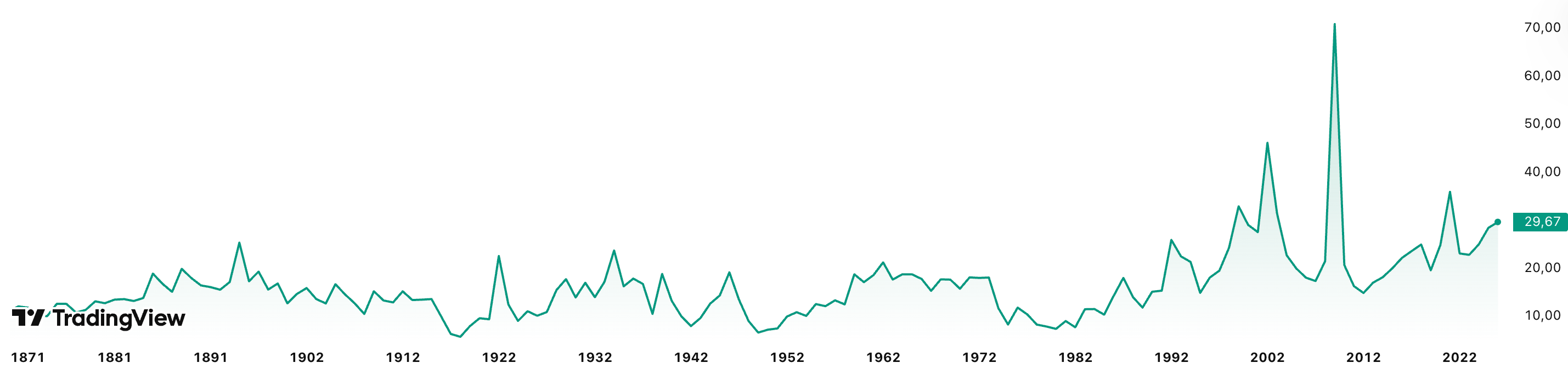 A día de hoy el S&P 500 cotiza a 29.67x.