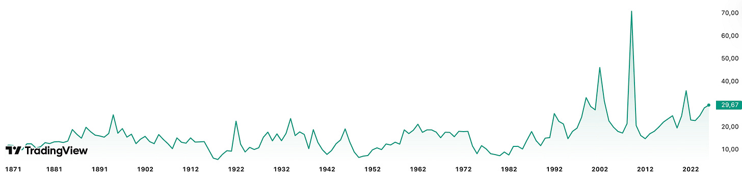 Por poner en contexto ese número, la media histórica desde 1.950 es de 15-16x.