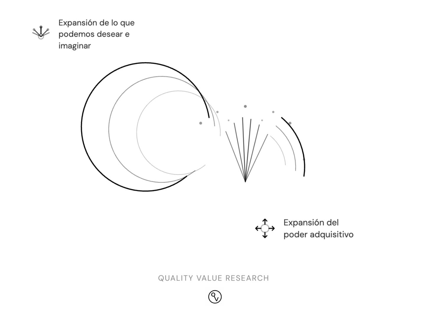 Cuando el SaaS que costaba 500 dólares anuales pasa a costar 50 —o cero—, esos 450 dólares no han desaparecido de la economía: son excedente del consumidor que queda libre para gastarse en otra cosa, o excedente del inversor que queda libre para destinarse a otro proyecto. Multiplicado por millones de transacciones, en centenares de sectores simultáneamente, el efecto probable es una expansión masiva del poder adquisitivo real que no aparece como ingreso salarial en ninguna nómina pero que opera exactamente como renta disponible para quien lo recibe.