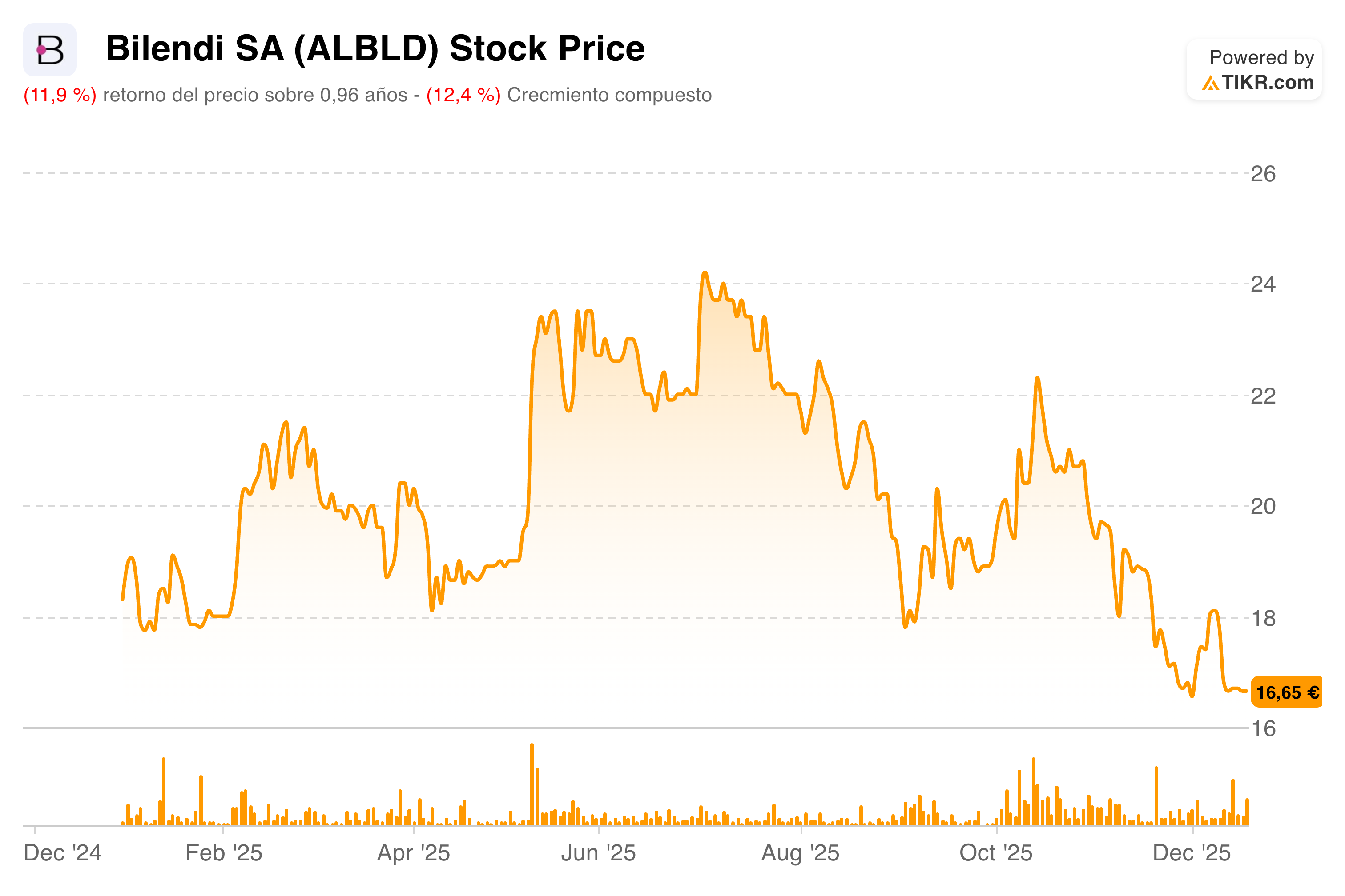 Este año la acción llegó a superar los 24 €, pero en los últimos meses ha corregido y acumula una caída aproximada del 12% en lo que va de año.