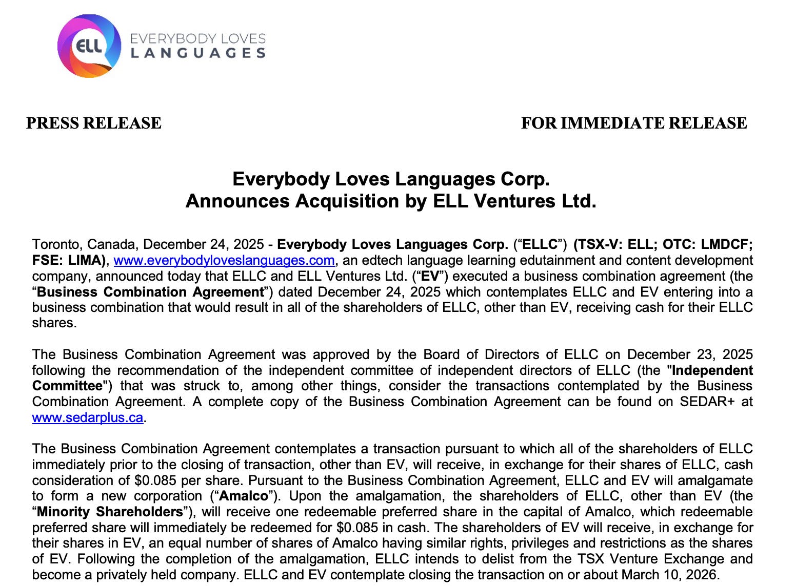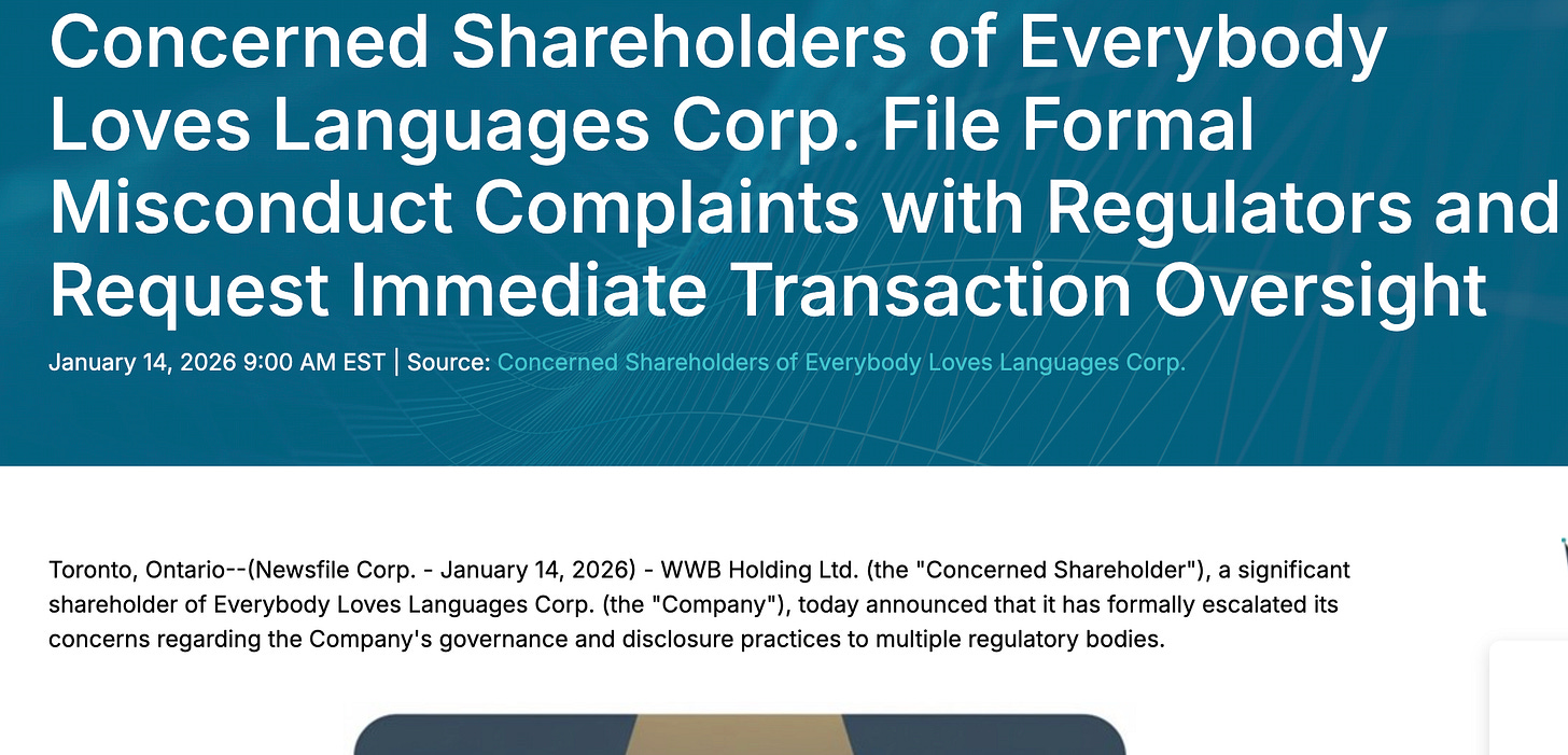 Everybody Loves Languages (ELL) es una microcap canadiense del sector EdTech centrada en soluciones de aprendizaje de idiomas (con un componente tipo SaaS) y, por tamaño y liquidez, suele pasar totalmente desapercibida para el mercado.
