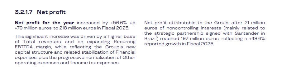 Esa participación minoritaria ya se ve en las cuentas: €21m de intereses minoritarios en FY’25, “principalmente” por esta JV.