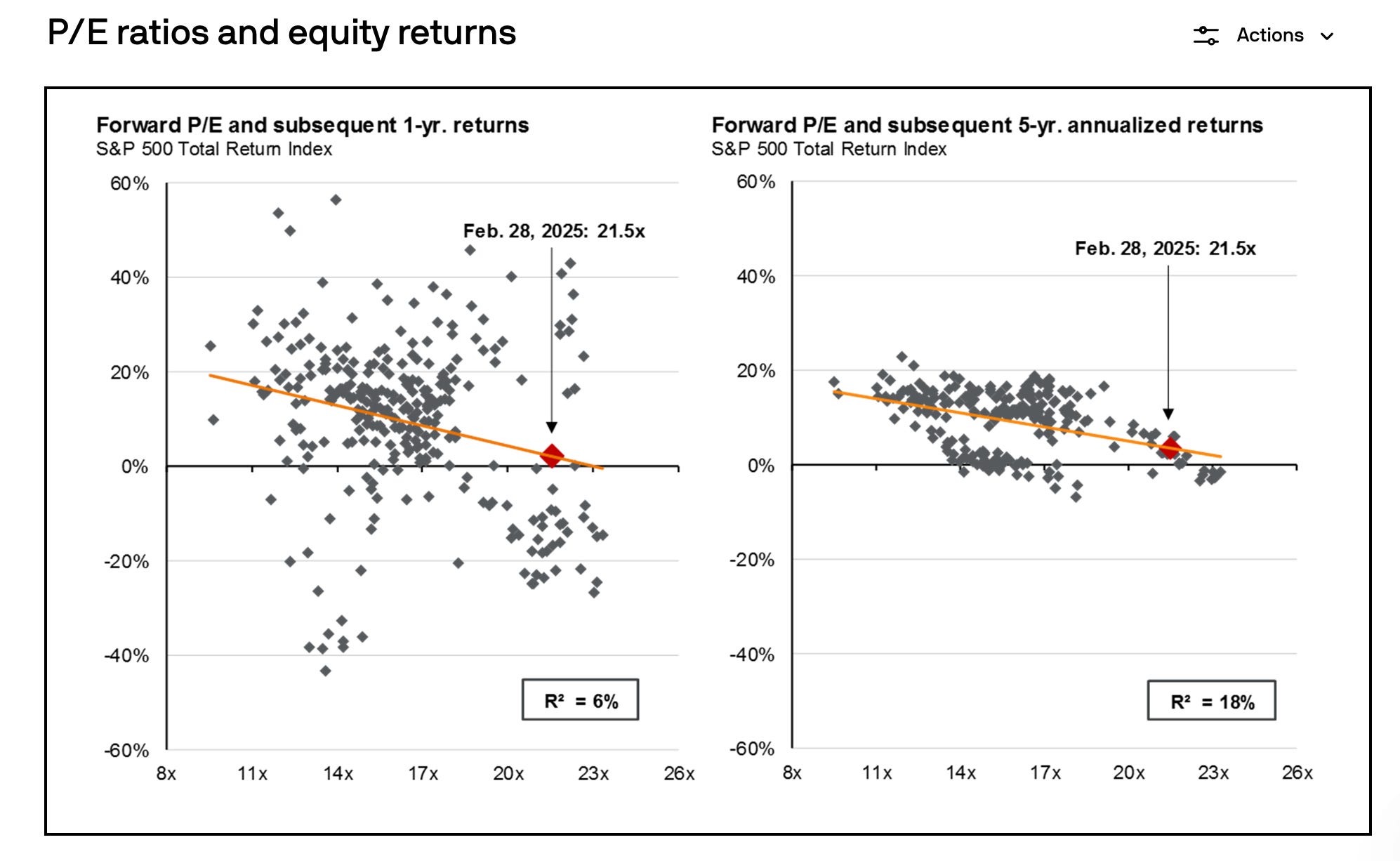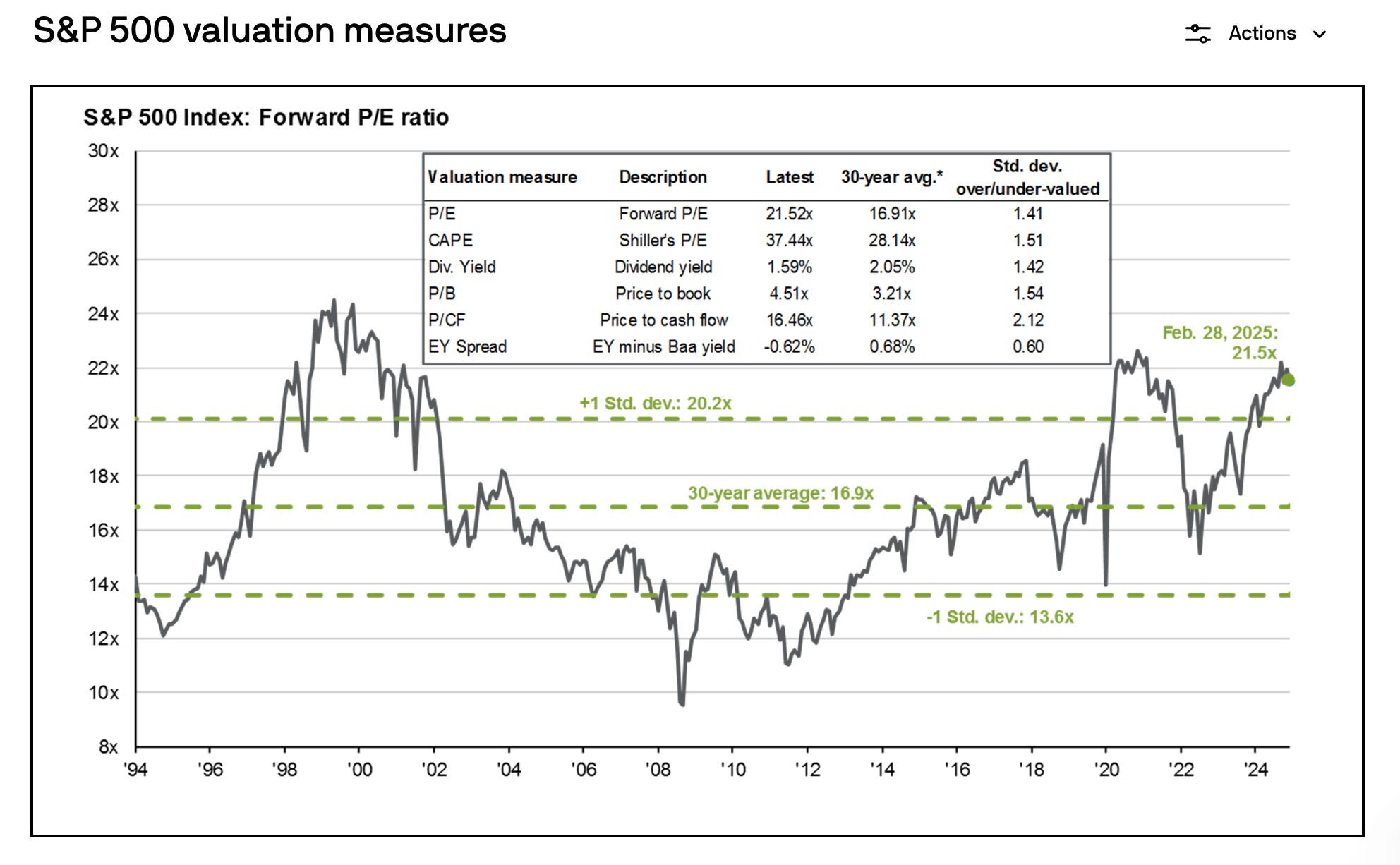 Muy sencillo actualmente el S&P500 esta cotizando a 21.5x de PER.