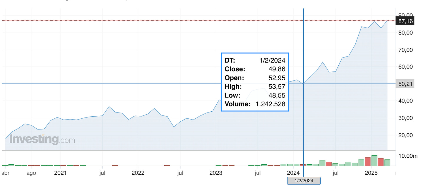 A inicios de 2024, con la llegada de Javier Milei a la presidencia de Argentina, decidí añadir un ETF con exposición al mercado de Argentina.