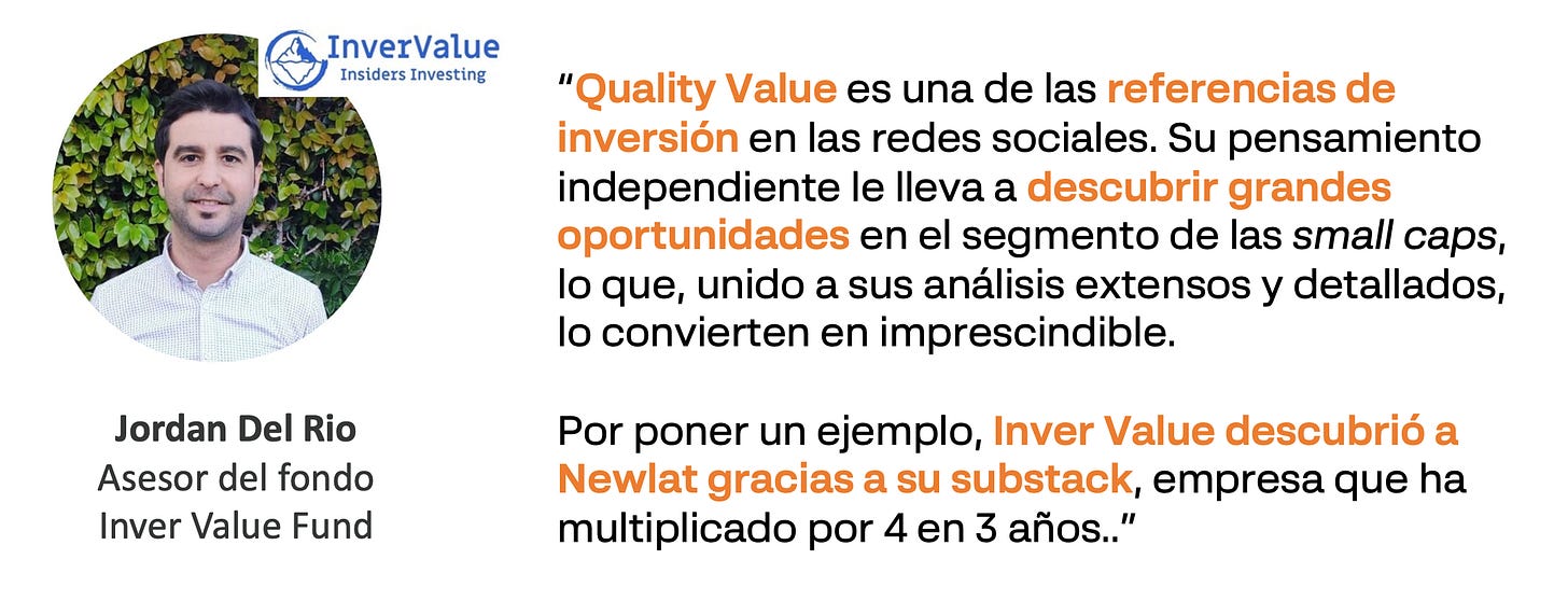 Quality Value es una newsletter profesional que ha logrado aportar valor incluso a gestores de referencia, quienes la consideran una fuente fiable de formación financiera e ideas de inversión.